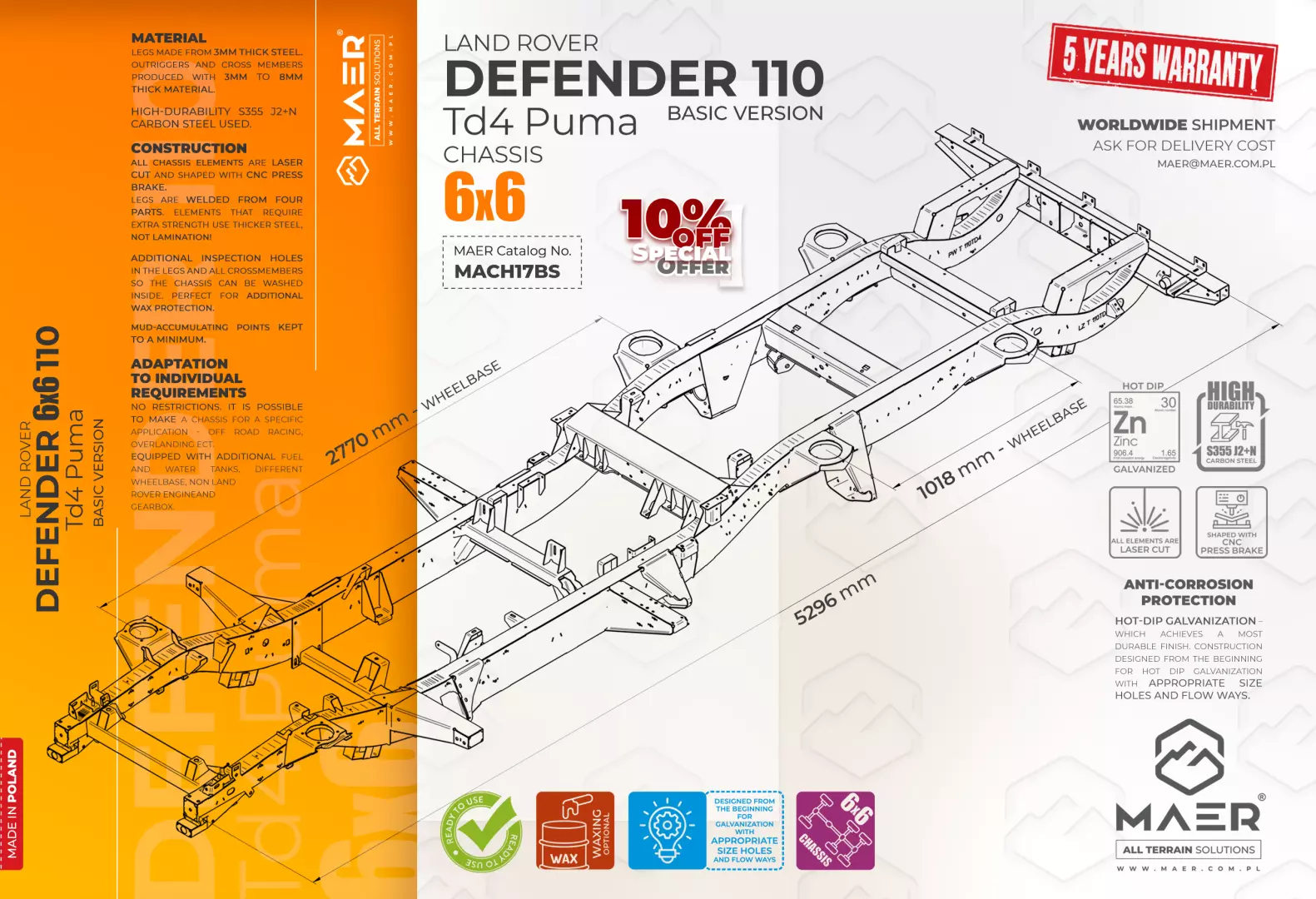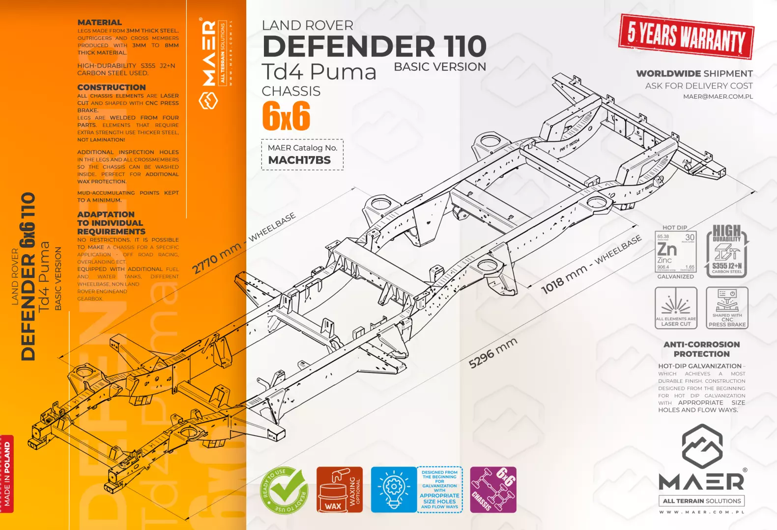 Land Rover DEFENDER 110 6×6 Td4 Puma galvanised chassis BASIC – MAER All Terrain Solutions
