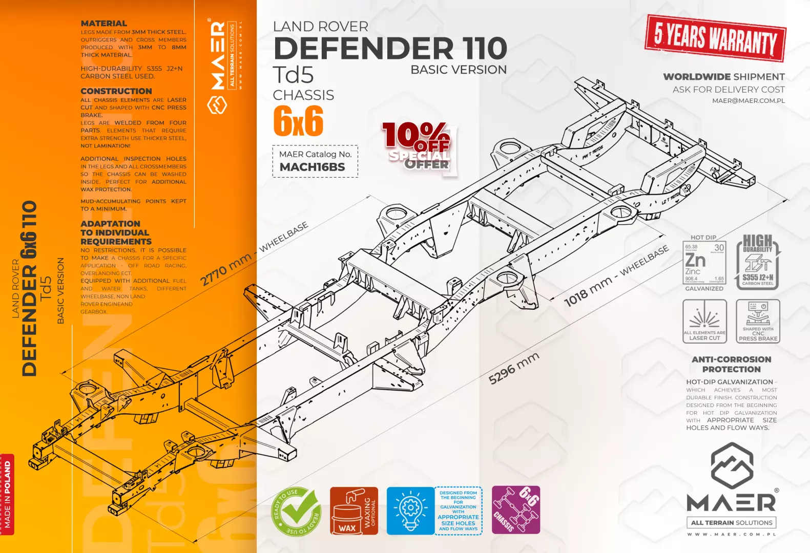 Land Rover DEFENDER 110 6×6 Td5 galvanised chassis BASIC – MAER All Terrain Solutions
