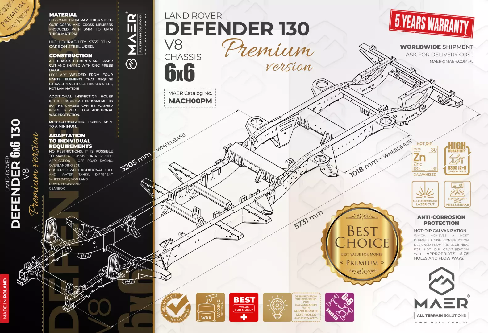 Land Rover DEFENDER 130 6×6 200TDi galvanised chassis PREMIUM – MAER All Terrain Solutions