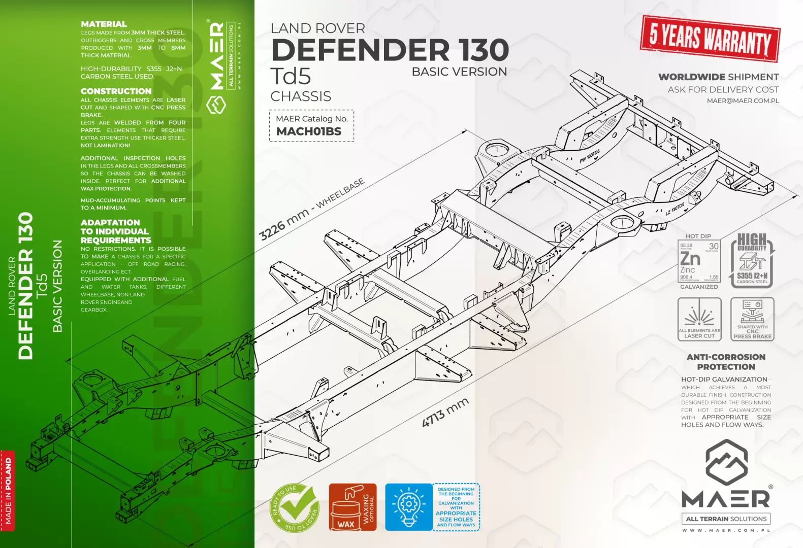 Land Rover DEFENDER 130 Td5 galvanised chassis BASIC – MAER All Terrain Solutions