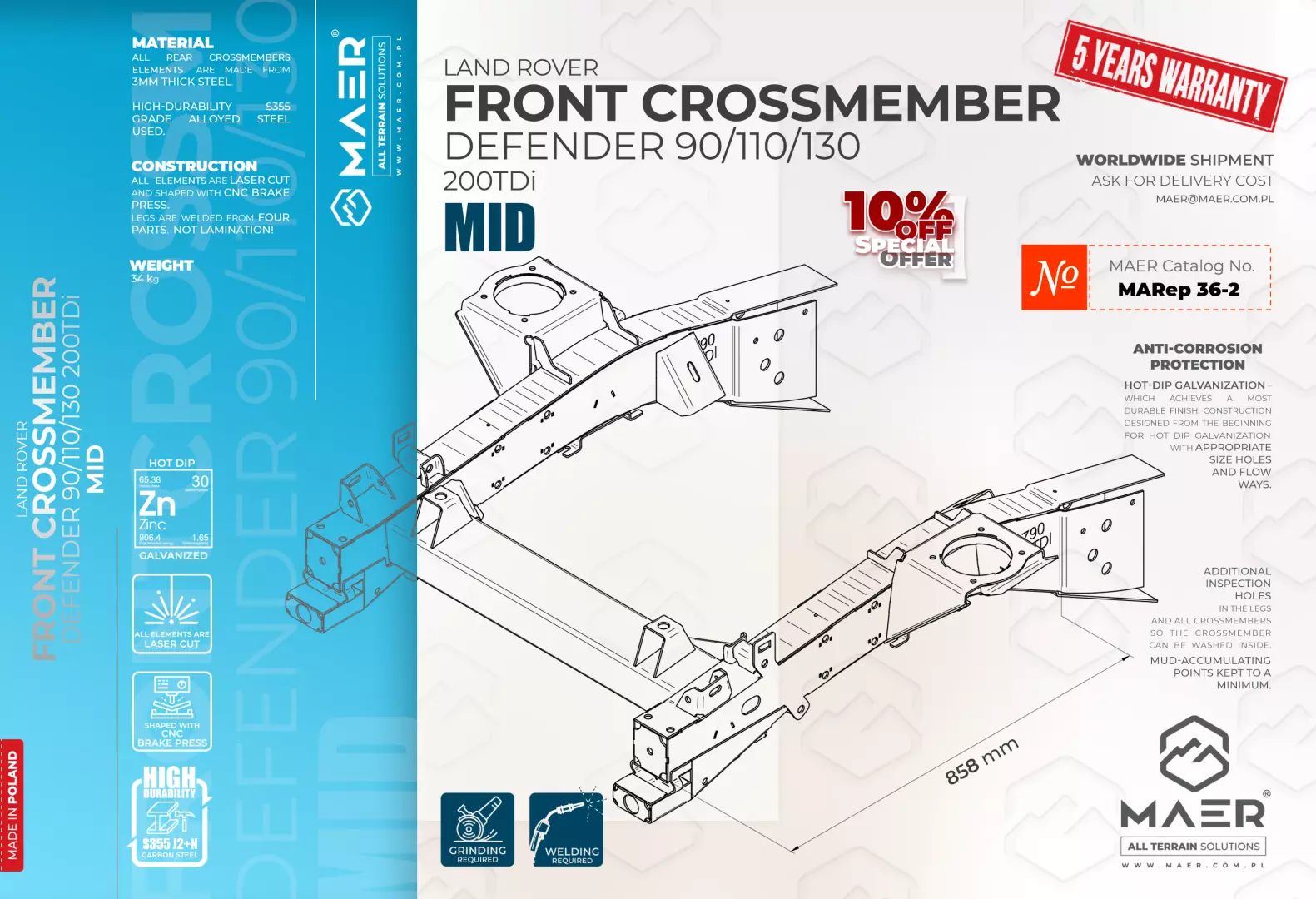 Land Rover Defender 90 110 130 200TDi front crossmember MID – MAER All Terrain Solutions