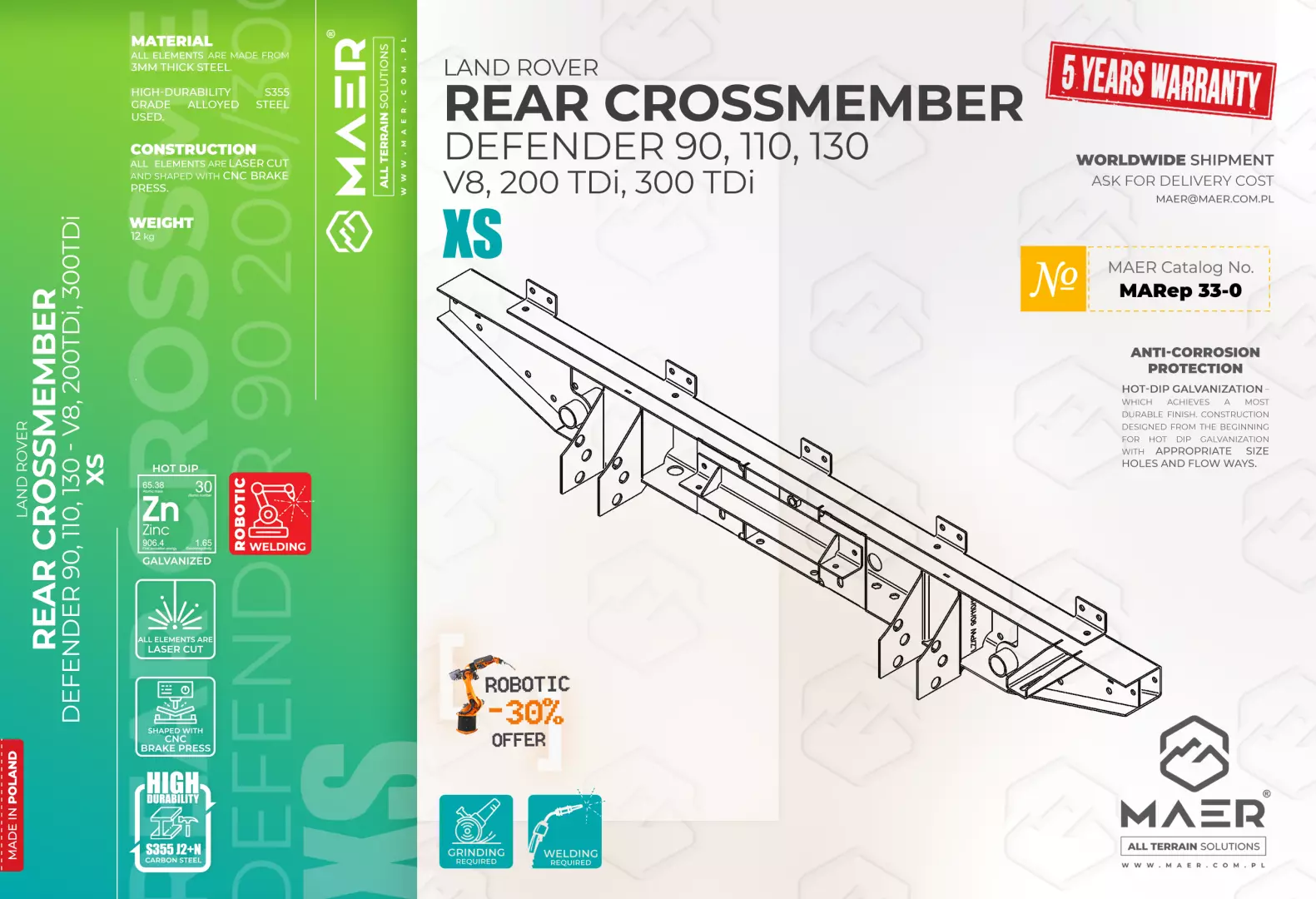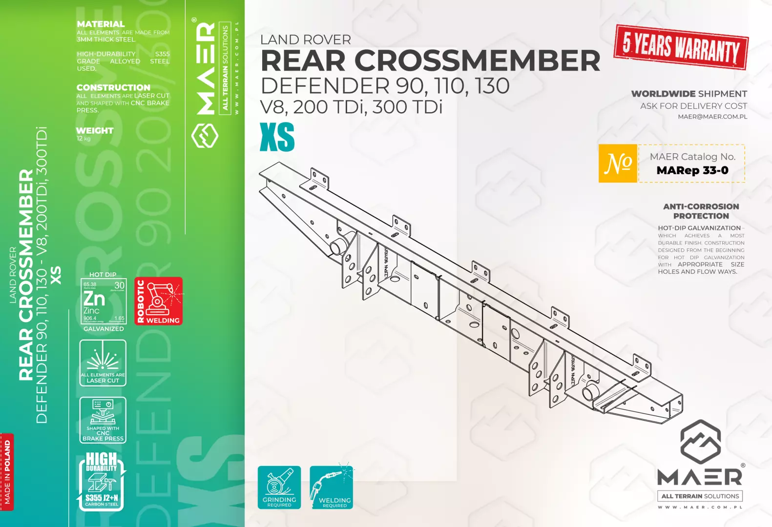 Land Rover Defender 90, 110, 130 – V8, 200/300 TDi rear crossmember XS – MAER All Terrain Solutions