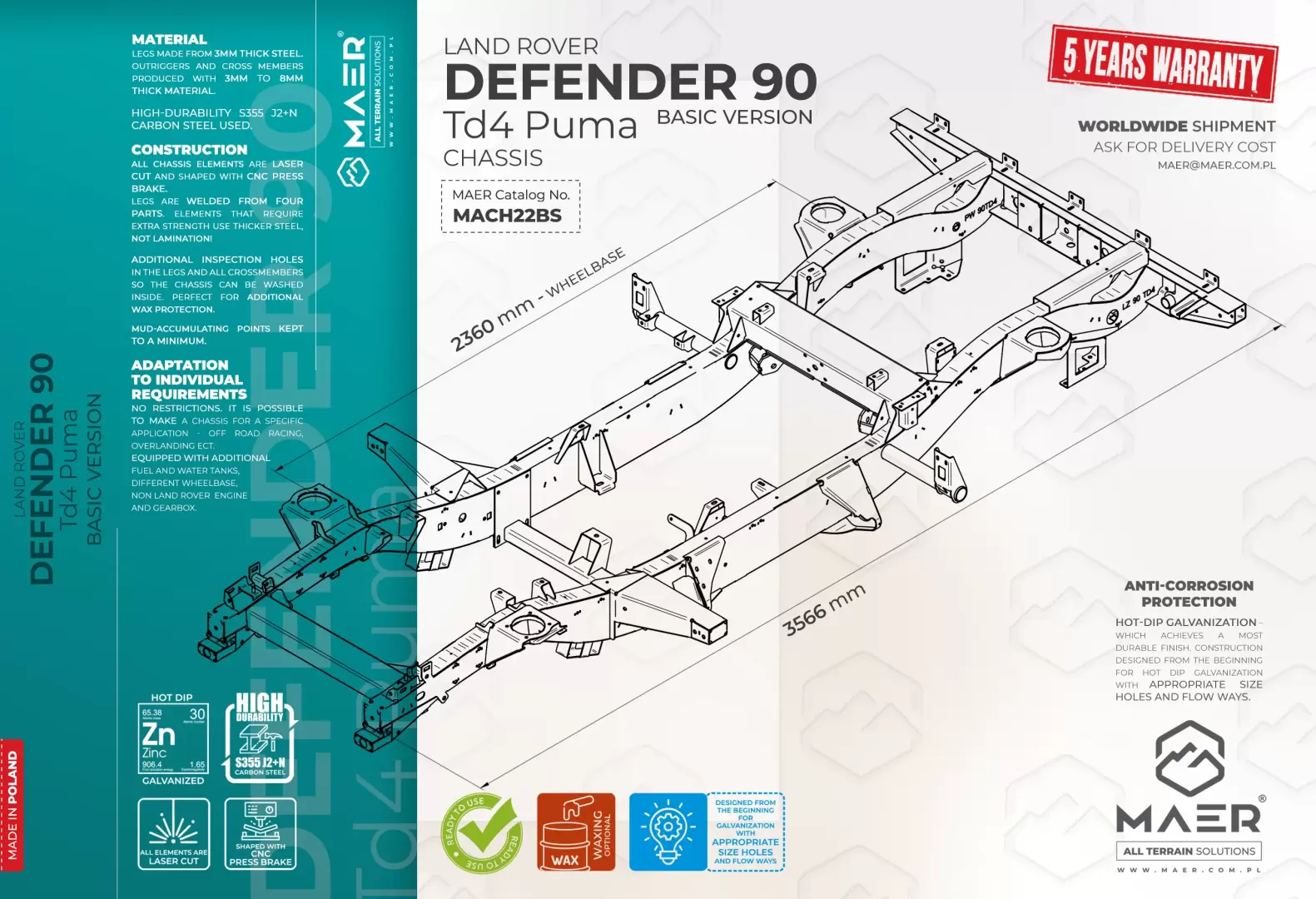 Land Rover DEFENDER 90 Td4 Puma galvanised chassis BASIC – MAER All Terrain Solutions
