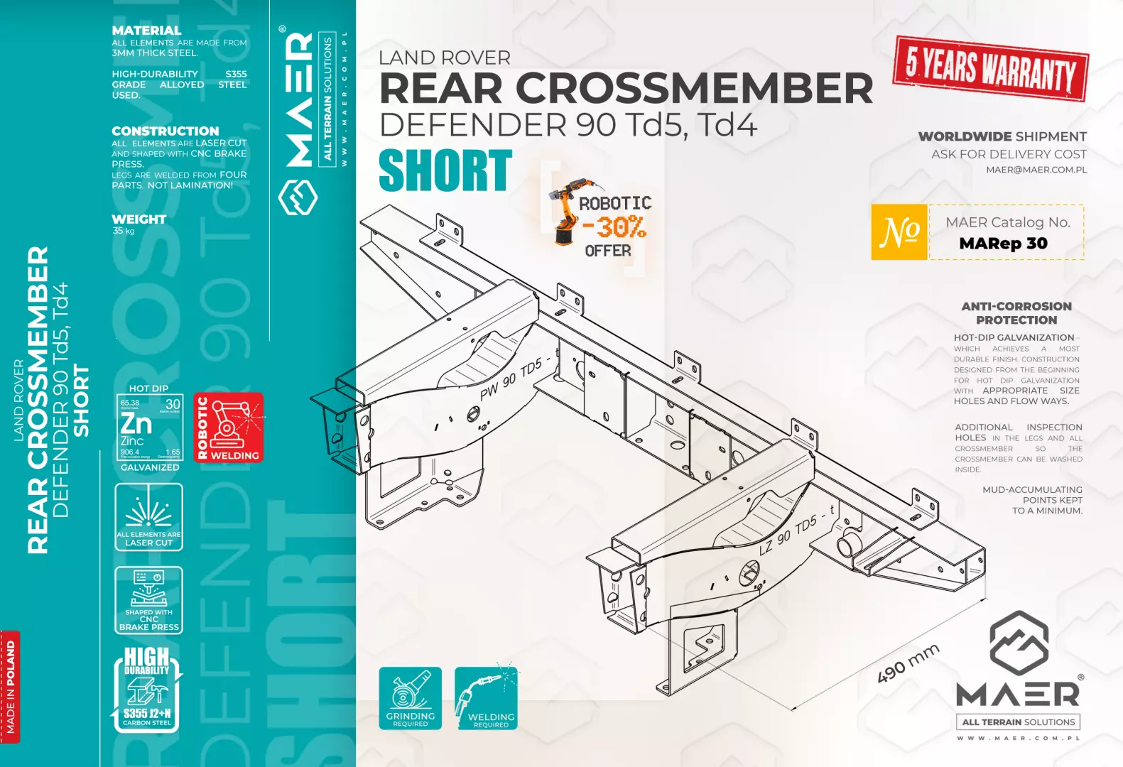 Land Rover Defender 90 Td5/Td4 rear crossmember SHORT – MAER All Terrain Solutions