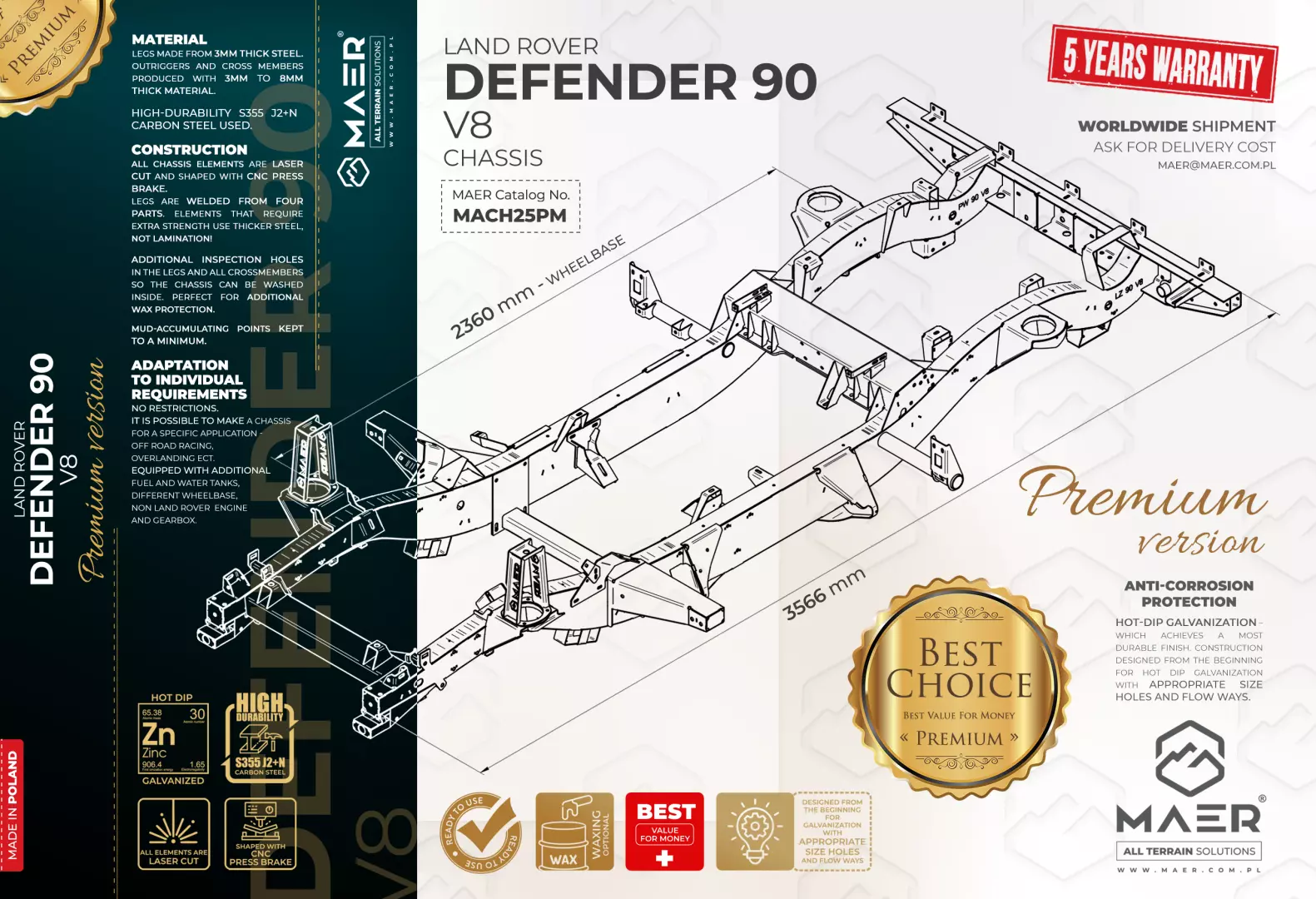 PREMIUM VERSION of Land Rover DEFENDER 90 V8 chassis – premium level of our highest quality product supplied with: