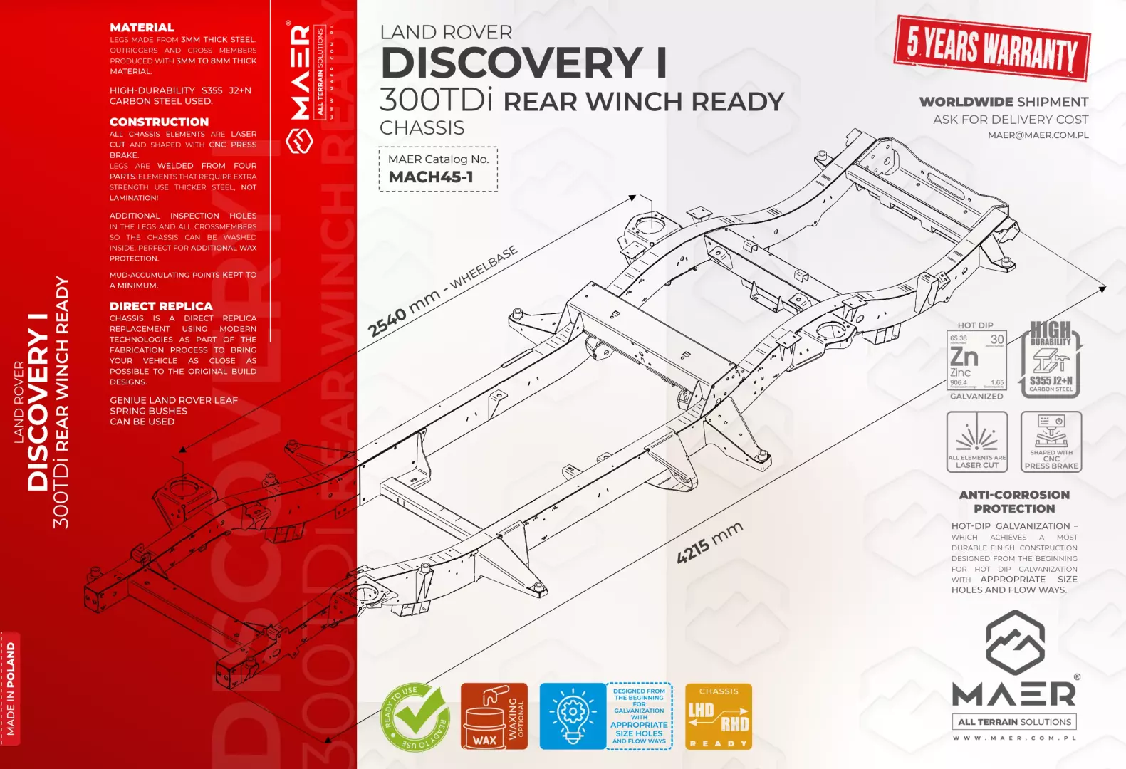 Land Rover DISCOVERY I 300TDi REAR WINCH READY galvanised chassis – MAER All Terrain Solutions