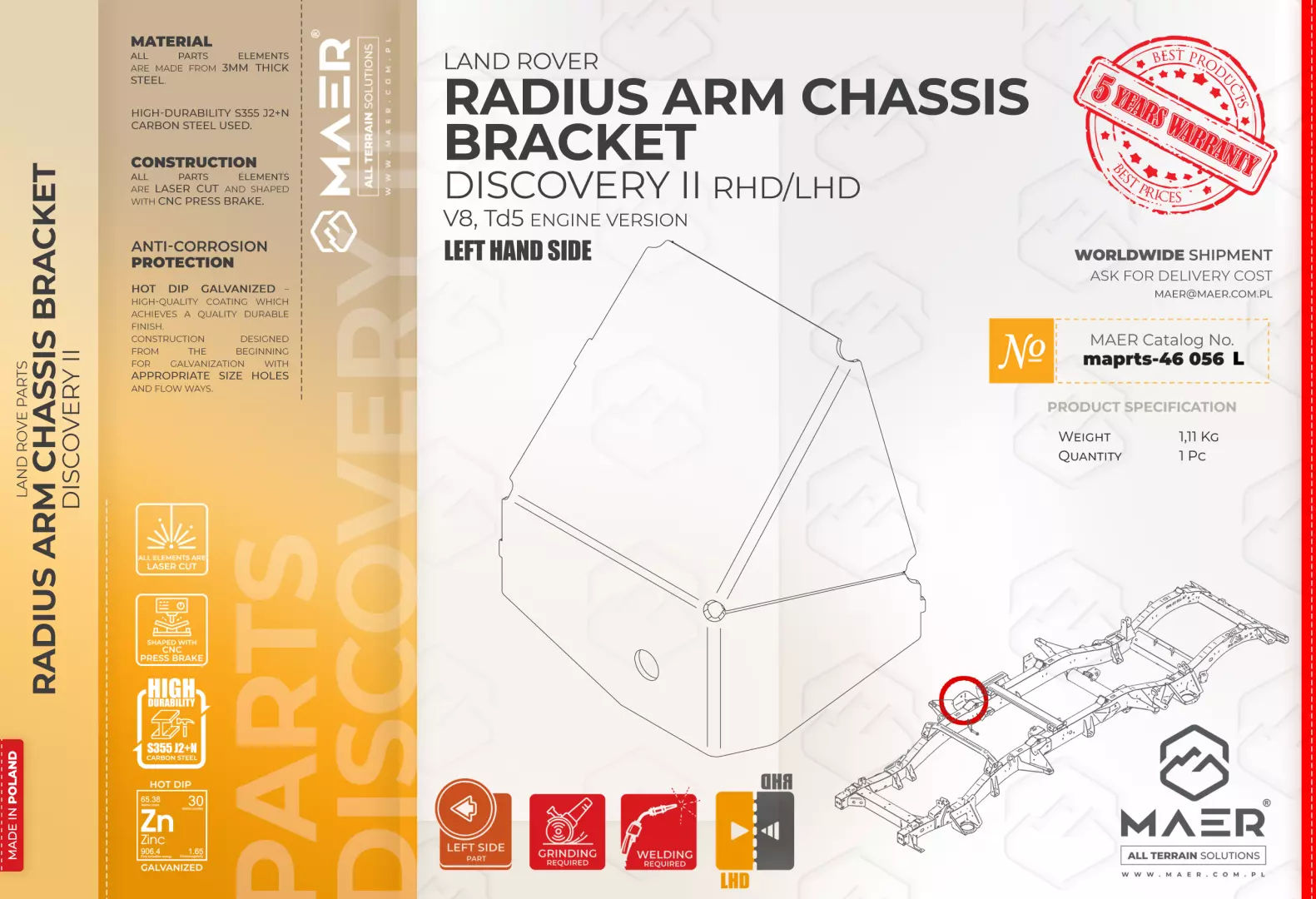 Land Rover DISCOVERY II V8, Td5 galvanised RADIUS ARM CHASSIS BRACKET left