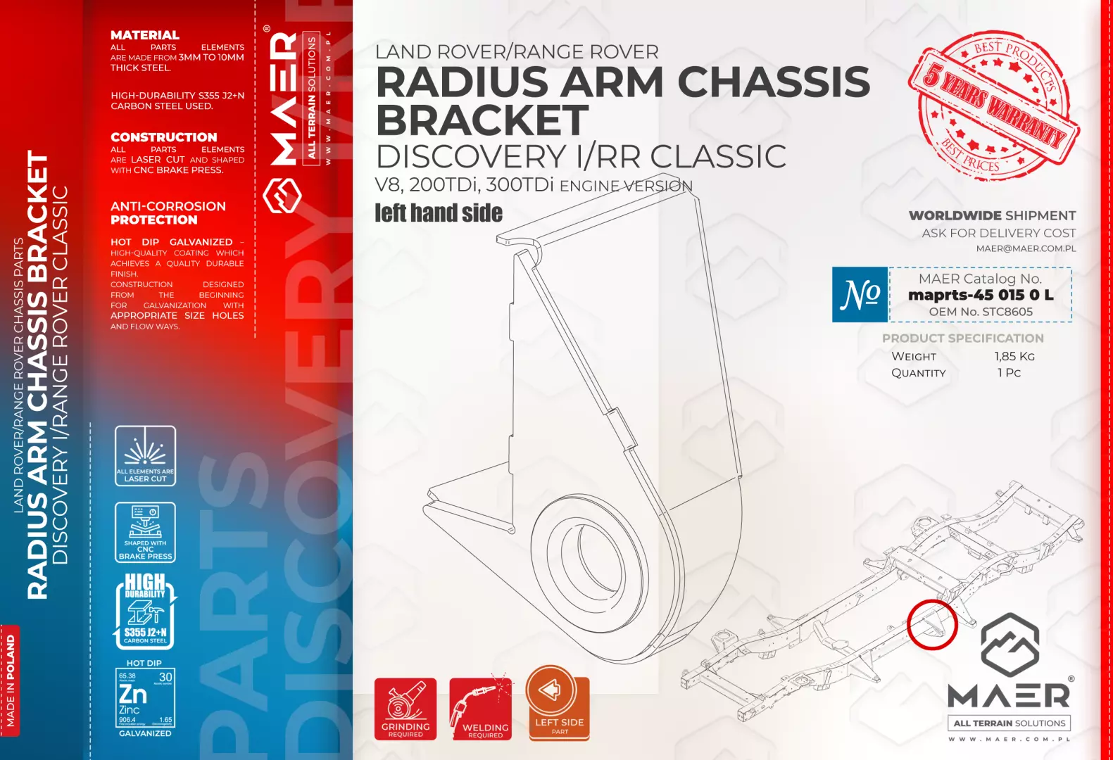 Land Rover Discovery/Range Rover Classic RADIUS ARM CHASSIS BRACKET left