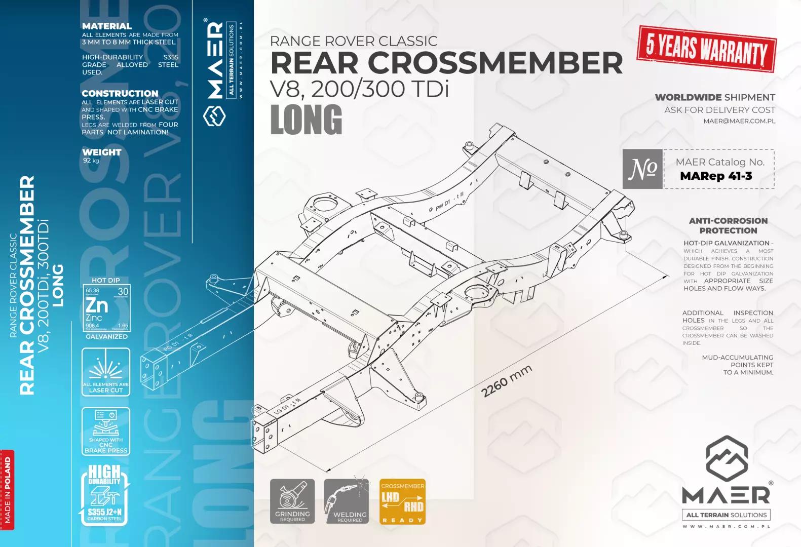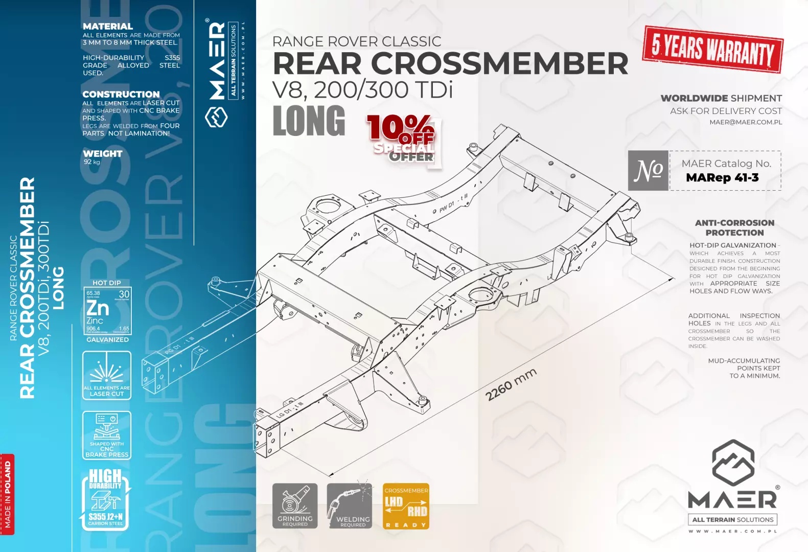 Range Rover Classic REAR crossmember – LONG – MAER All Terrain Solutions