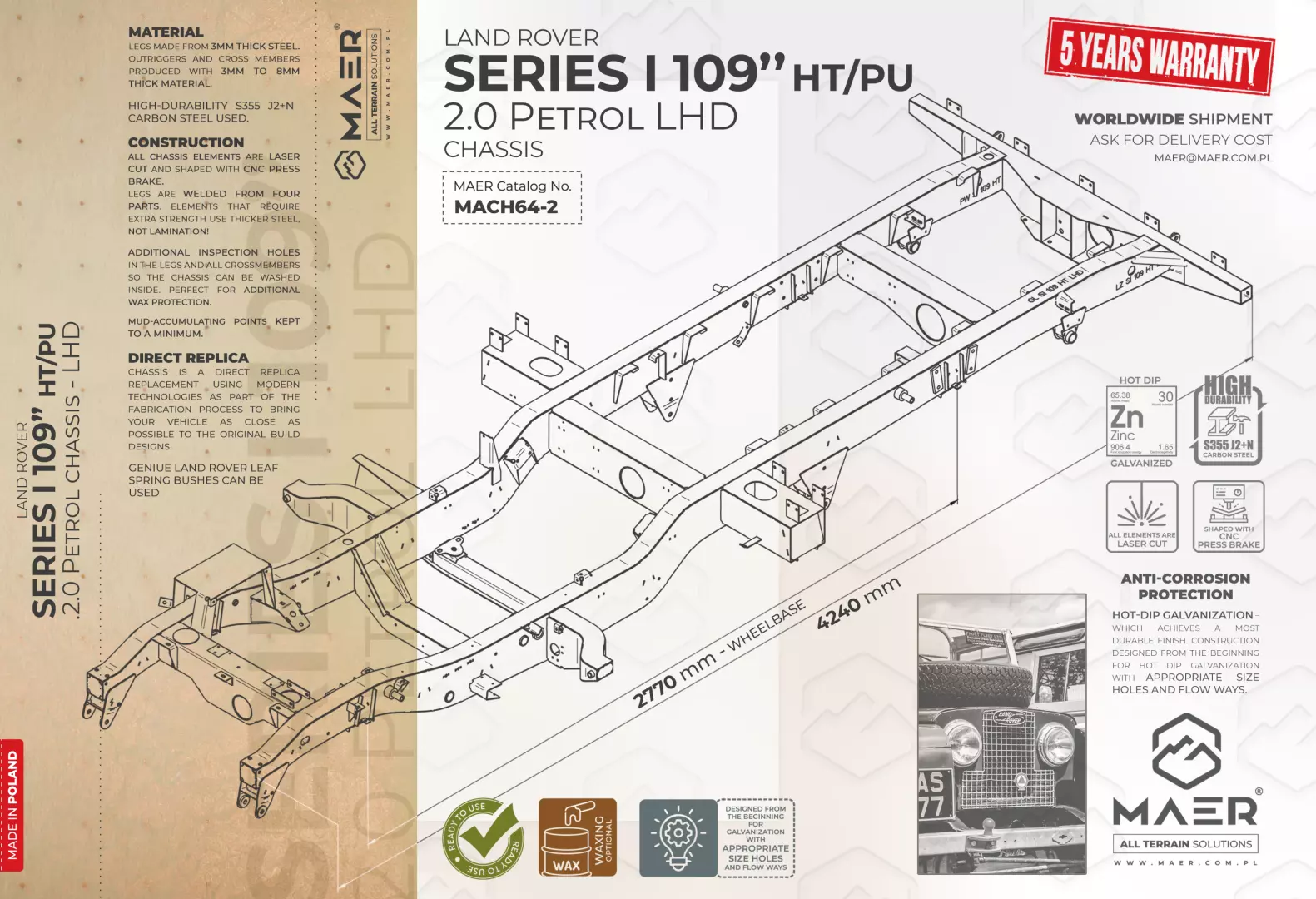 Land Rover SERIES I 109″ HT/PU 4cyl chassis LHD galvanised chassis – MAER All Terrain Solutions