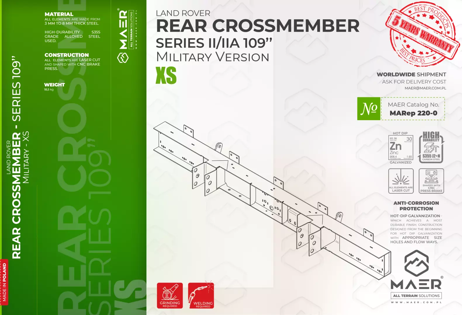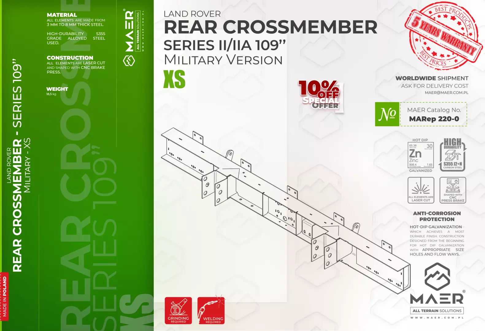 Land Rover Series II/IIA 109″ Military version REAR crossmember – XS – MAER All Terrain Solutions