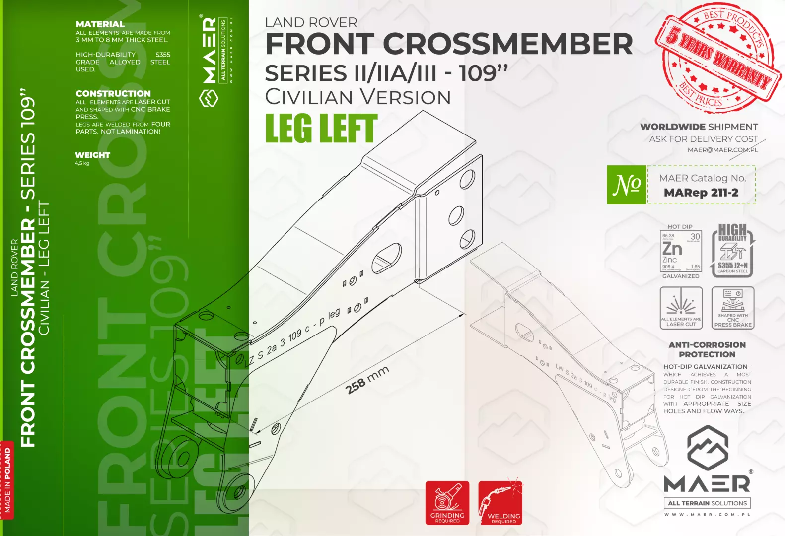 Land Rover Series II/IIA/III 109″ FRONT crossmember – LEG LEFT – MAER All Terrain Solutions