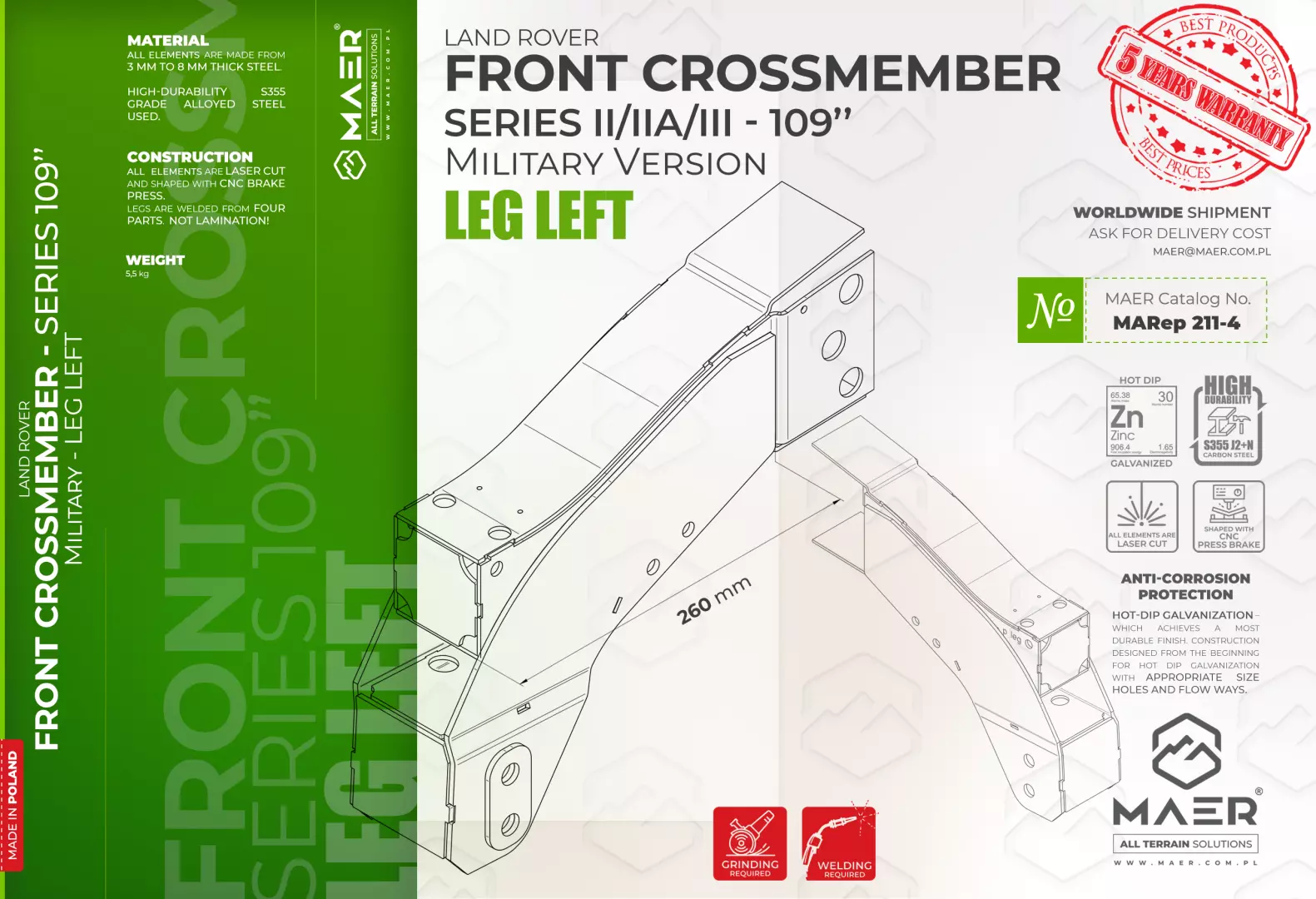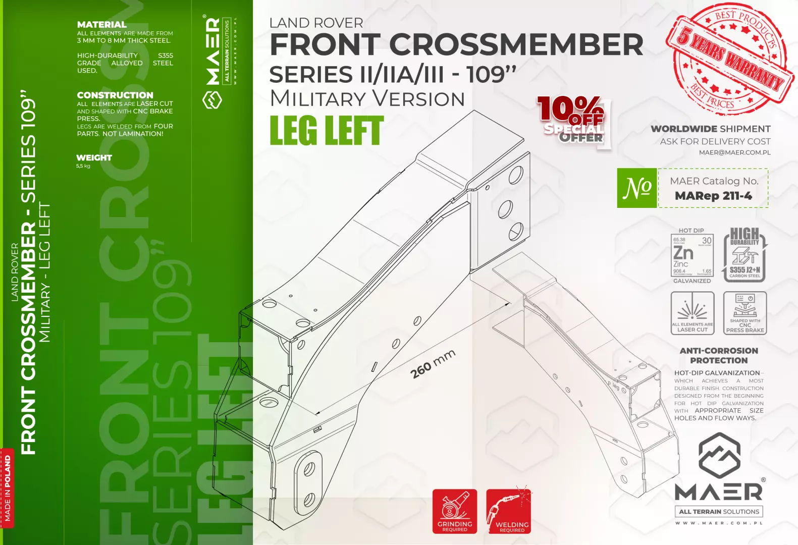 Series II/IIA/III 109″ military FRONT crossmember – leg left – MAER All Terrain Solutions