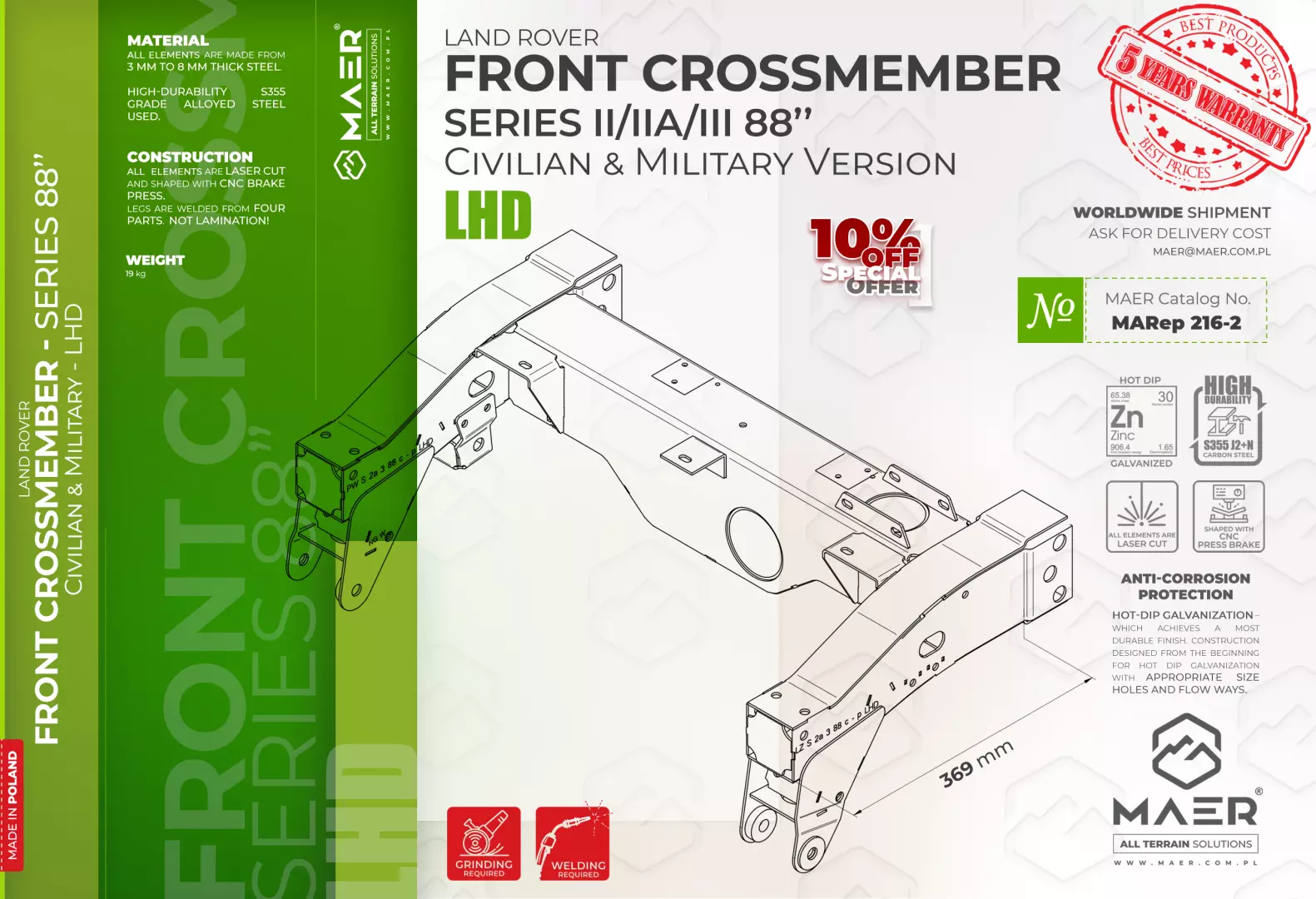 Land Rover Series II/IIA/III 88″ FRONT crossmember – LHD – MAER All Terrain Solutions