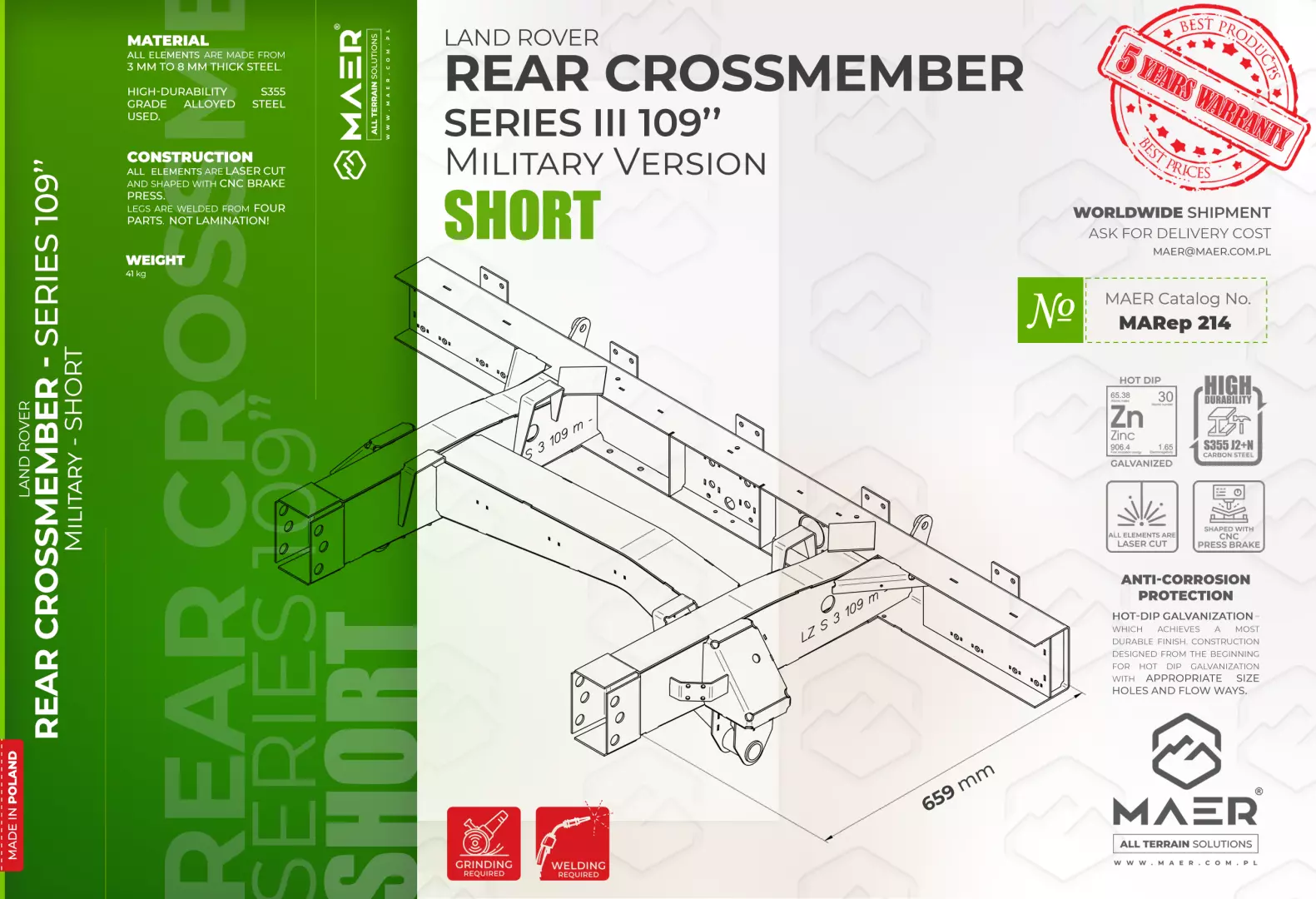 Land Rover Series III 109″ Military version REAR crossmember – SHORT – MAER All Terrain Solutions