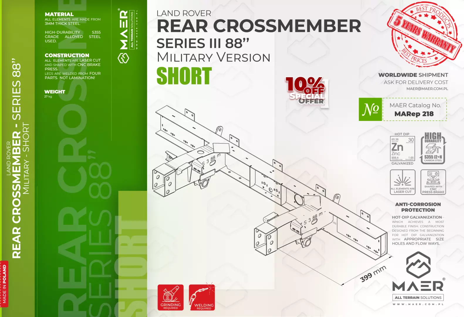 Land Rover Series III 88″ Military version REAR crossmember – SHORT – MAER All Terrain Solutions